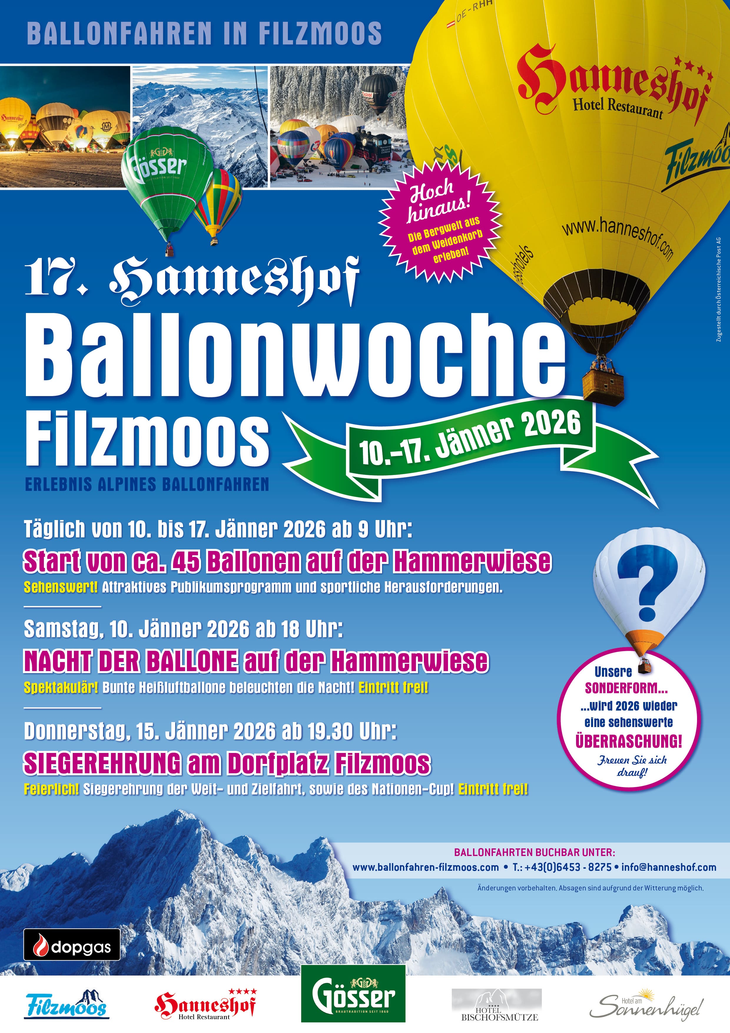 Během našeho výjezdu nám můžete psát na info@balony.eu nebo volat na +420 774 155 017 a +420 774 996 806 – pro neodkladné záležitosti jsme vám k dispozici i na dálku.