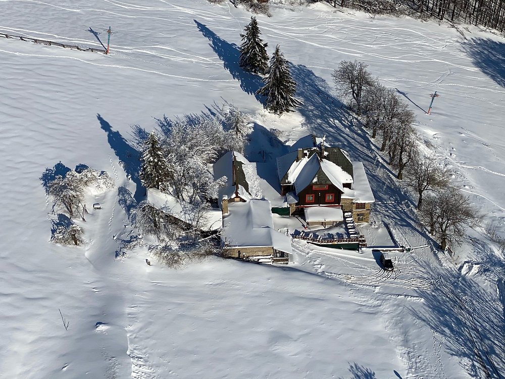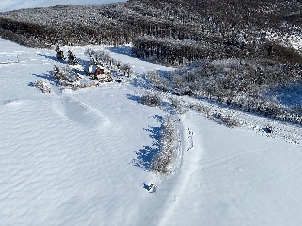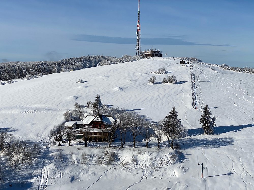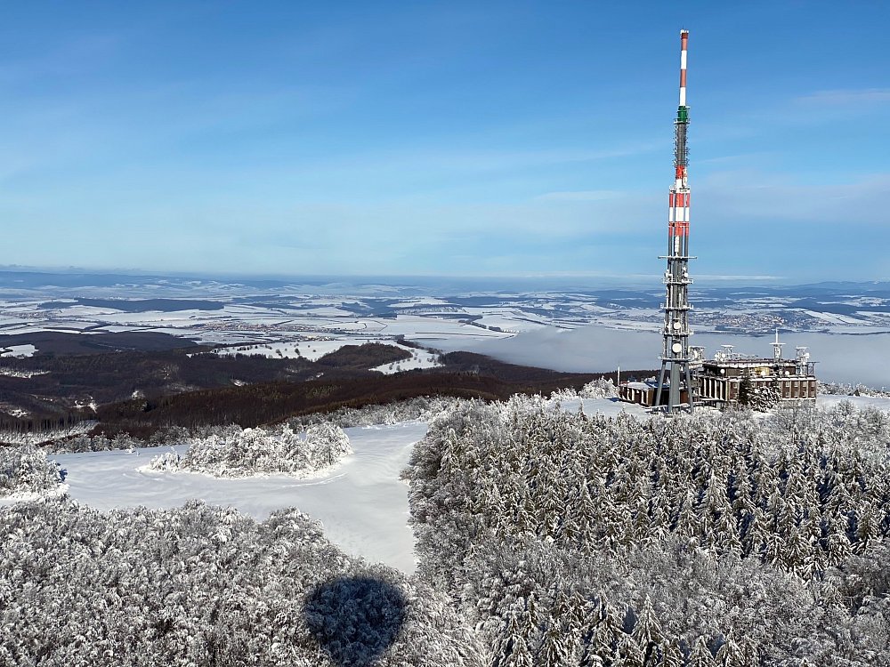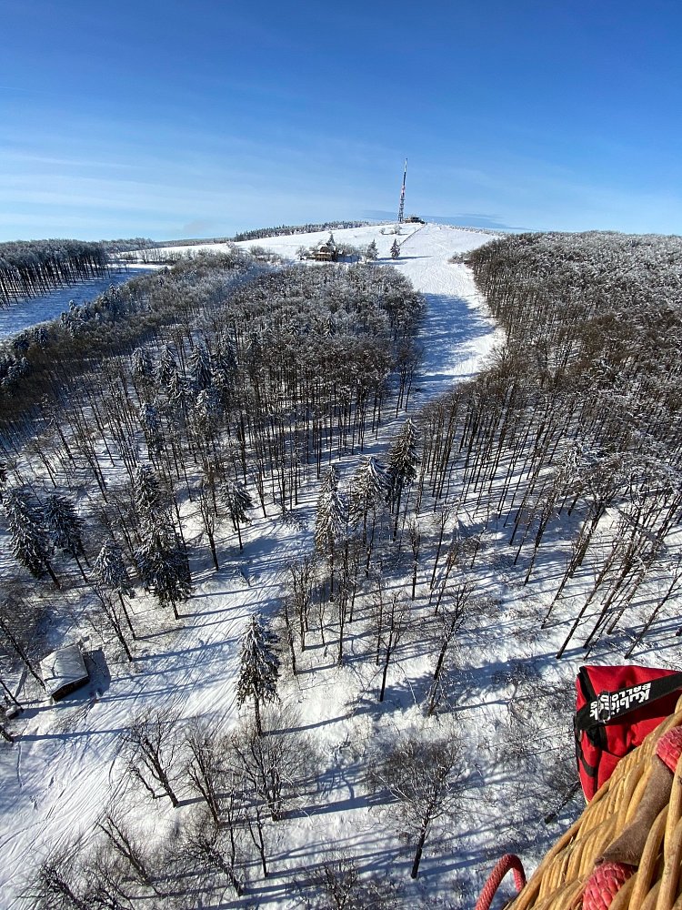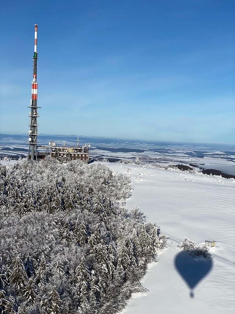 Let balonem nad zasněženou Javořinou